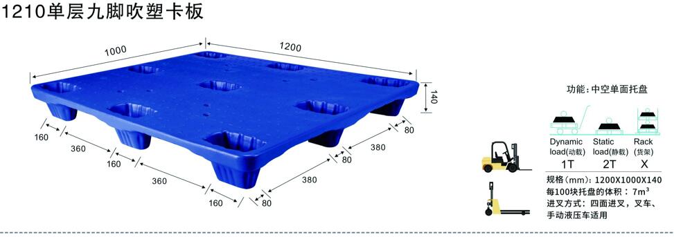 | 1210單層九腳吹塑卡板 | 1200*1000*140 |